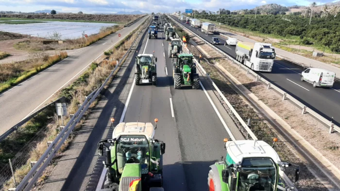 Una multitudinaria caravana de agricultores y ganaderos colapsó las principales autovías de la Región de Murcia este miércoles, en una jornada de movilizaciones que las organizaciones agrarias calificaron como un éxito rotundo, superando las expectativas iniciales.