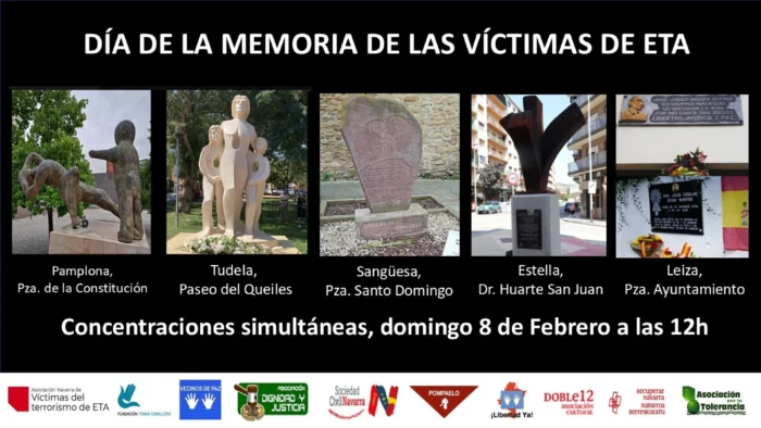 Diversas asociaciones han convocado concentraciones simultáneas en cinco localidades de Navarra para conmemorar el Día de la Memoria de las Víctimas de ETA. Los actos tendrán lugar el próximo domingo 8 de febrero a las 12:00 del mediodía.