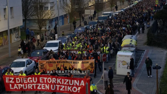 Miles de personas se manifestaron en Amurrio, Álava, en apoyo a los 336 trabajadores de Tubos Reunidos y Maderas de Llodio, quienes enfrentan Expedientes de Regulación de Empleo (ERE). La movilización se produjo después de que el Tribunal Superior de Justicia del País Vasco (TSJPV) declarara improcedente el ERE de Maderas de Llodio.