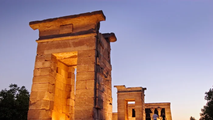 El templo fue un obsequio del gobierno egipcio a España en la década de los 70, como agradecimiento por la colaboración española en la campaña de salvamento de Nubia. Sin embargo, a diferencia de otros países que recibieron templos similares y los ubicaron en museos, España optó por situarlo en un parque, cediendo la responsabilidad de su cuidado al Ayuntamiento de Madrid.