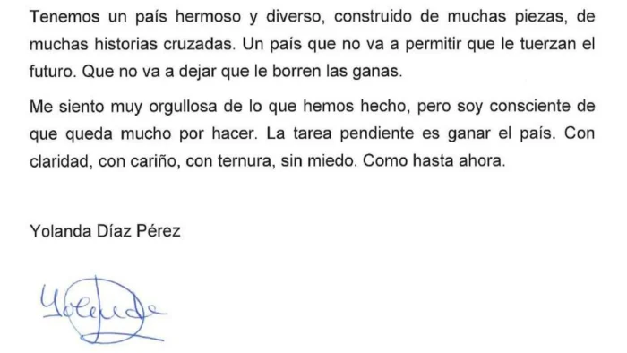 En una extensa carta hecha pública este miércoles, Díaz explicó que esta decisión abre “nuevos caminos para insuflar de ilusión al espacio progresista”.