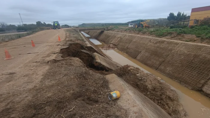 Los daños se extienden a los cinco grandes canales que abastecen a casi 190.000 hectáreas de regadío. Se han registrado desbordamientos, erosiones en canales, presas rebasadas, sifones colmatados, tuberías dañadas y caminos de servicio deteriorados.