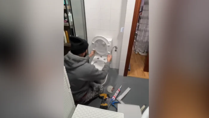 En el video, Julián explica un trabajo reciente: el cambio de un inodoro.