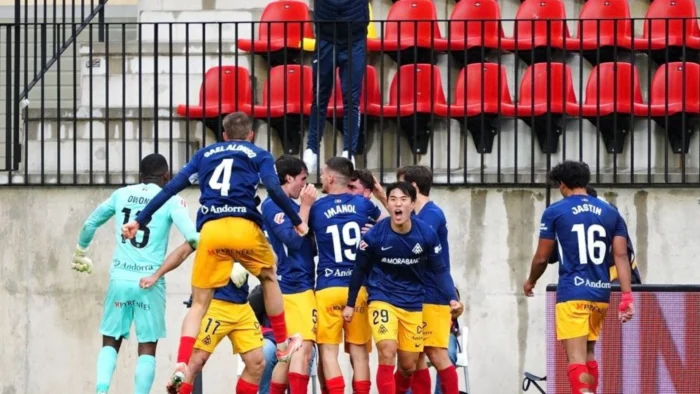 En los minutos finales, Juan Otero dribló a ‘Bomba’, pero su disparo se fue desviado. Finalmente, en el minuto 93, llegó el gol de la victoria para el FC Andorra. Un disparo de Yeray Cabanzón desde la frontal del área fue desviado por Jesús Bernal en propia meta, sorprendiendo a Christian Joel y sellando el 1-0 definitivo.