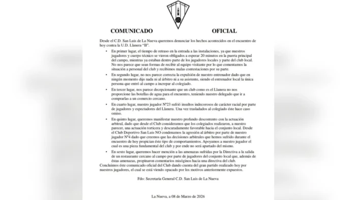Lo más sorprendente fue el comunicado inicial del CD San Luis, que en lugar de condenar la agresión, pareció justificarla. En un comunicado de seis puntos, el club expresó su “profundo descontento con la actuación arbitral”, alegando que las decisiones favorecieron al equipo local.