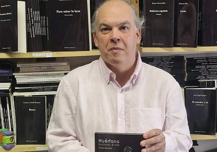 Pablo Méndez, madrileño de 1975, conjuga con pasión la escritura y la edición. Tras años impulsando la editorial Vitruvio, presenta ahora “Huérfano buscando el mar”, un poemario que inaugura una colección de cuidada edición.