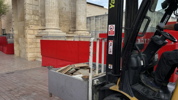 Córdoba ya respira Semana Santa. Con el inicio del montaje de los palcos y sillas en la carrera oficial, la ciudad se sumerge de lleno en los preparativos de una de sus semanas más importantes del año. Los trabajos comenzaron en la madrugada de este lunes en el entorno de la Mezquita-Catedral con el objetivo de afectar lo menos posible al día a día de la ciudad, según ha explicado el presidente de la Agrupación de Hermandades y Cofradías, Manolo Murillo. El plan es que toda la estructura, con sus casi 4.000 asientos, esté completamente lista el próximo Viernes de Dolores.