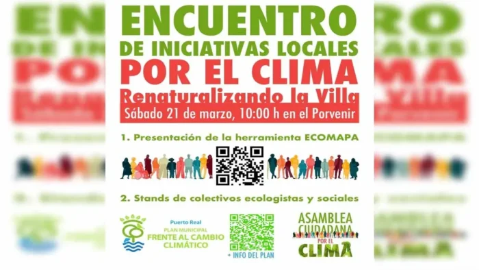 Puerto Real se prepara para acoger un importante encuentro de iniciativas locales por el clima, organizado por la Asamblea Ciudadana por el Clima. El evento, de carácter abierto, tendrá lugar el sábado 21 de marzo en los Jardines del Porvenir, coincidiendo con la celebración del Día Internacional de los Bosques.