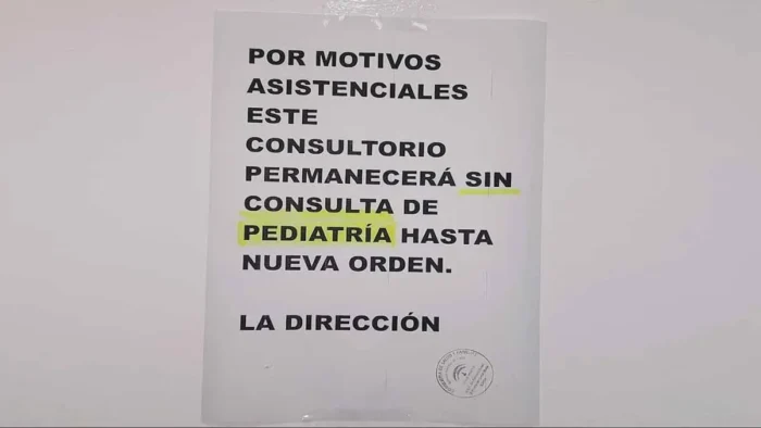 Además, ha cuestionado la señalización del consultorio, donde un cartel informa sobre la ausencia de pediatra “por motivos asistenciales hasta nueva orden”, mensaje que considera engañoso al sugerir una eventualidad temporal cuando se trata de una situación crónica.