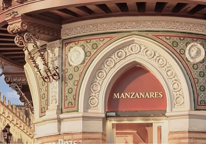 “Juan Ortega” se exhibe en el cartel de la Confitería de La Campana, mientras que la calle Antillano Campos en Triana pasa a ser “Aguado”. Las letras de “Manzanares” resaltan sobre el Edificio Filella en la Avenida de la Constitución, y “David de Miranda” se ubica en el Bar Arenal Ventura.