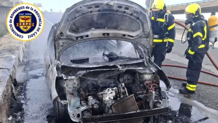 Impactante incendio en la autovía Cádiz-San Fernando: un coche arde por completo y el humo se ve en toda la bahía