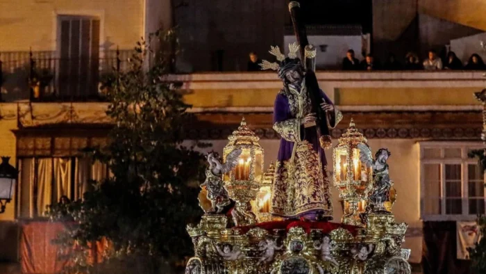 El paso del Cristo del Gran Poder se caracteriza por su solemnidad, procesionando sin música.