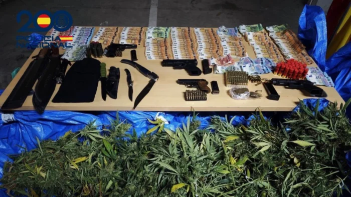La intervención ha resultado en la detención de 12 personas y la incautación de más de 1.000 plantas de marihuana, hachís, 3 armas de fuego con abundante munición, un arma simulada, varias armas blancas y más de 6.000 euros en efectivo.