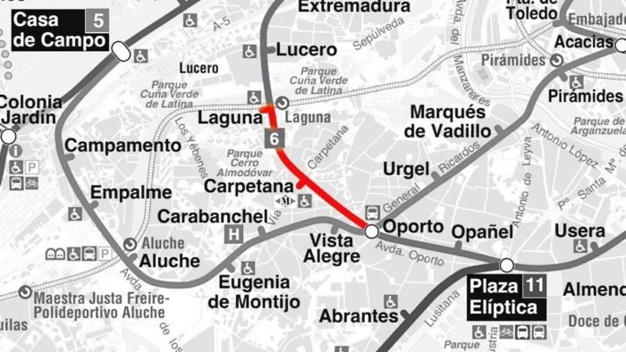 La línea 6 de Metro de Madrid experimentó una interrupción en el servicio que afectó a varias estaciones ubicadas en la zona sur de la ciudad. El tramo entre Laguna y Oporto, incluyendo Carpetana, se vio afectado desde el inicio del servicio el viernes. Durante aproximadamente dos horas, las estaciones de Opañel y Plaza Elíptica también se vieron afectadas.
