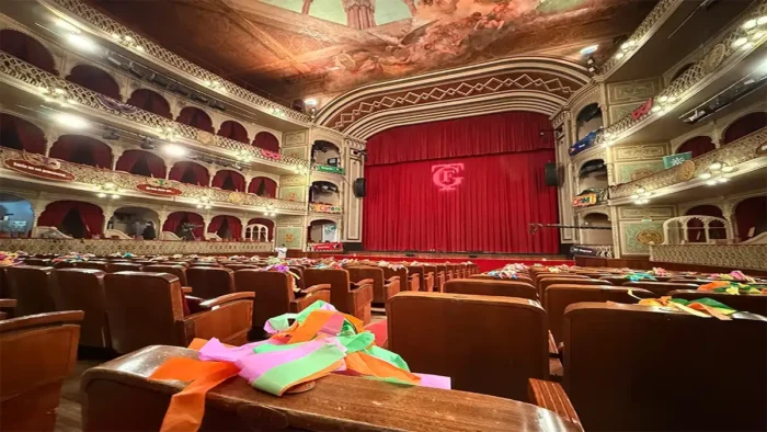 Con la fuerza de sus voces características, el coro “La esencia” inició su presentación bajo una lluvia de papelillos, capturando la atención del público desde el primer momento.