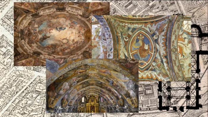 Las bóvedas narran las vidas de ambos santos, desplegando recursos expresivos casi teatrales, como los óculos fingidos en el techo, que simulan agujeros para dirigir la mirada del fiel hacia el cielo. En este espacio, una inscripción reza: “Vos estis lux mundi” (Vosotros sois la luz del mundo), en referencia a los santos.